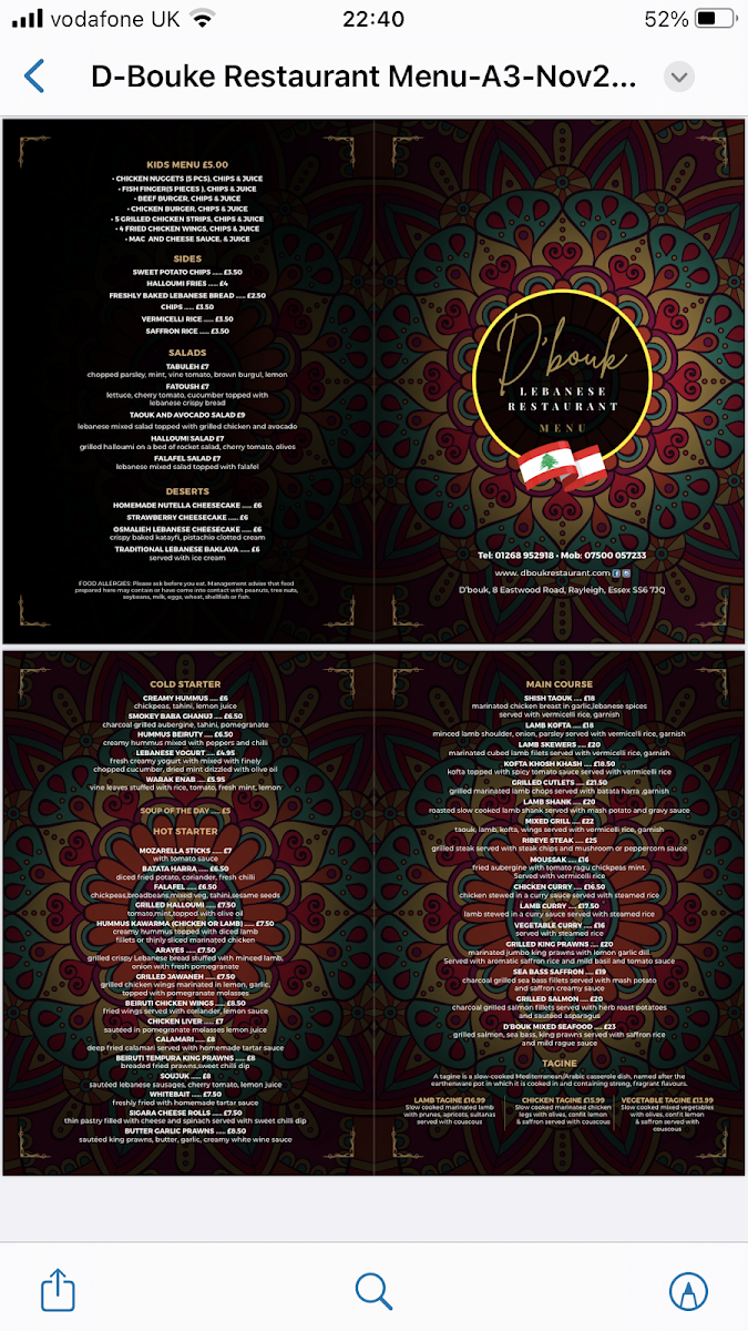 Welcome to D'bouk restaurant, a culinary gem nestled in Rayleigh, UK. Renowned for its exceptional Persian cuisine, D'bouk offers a delightful menu that promises to tantalize your taste buds. Diners have raved about the amazing food, with highlights including perfectly cooked meats like juicy chicken and tender lamb, complemented by a range of vibrant flavors.
